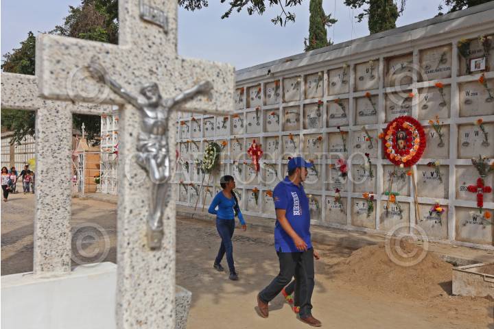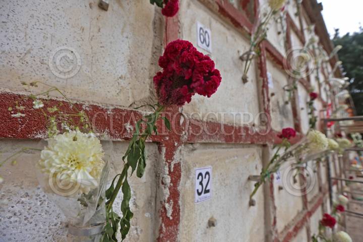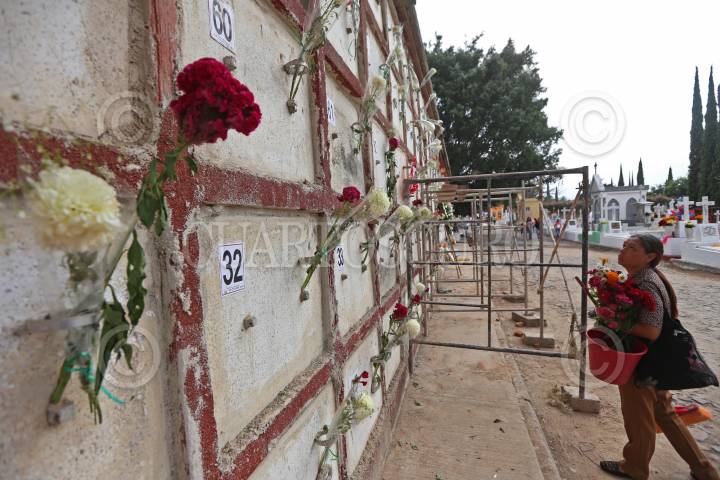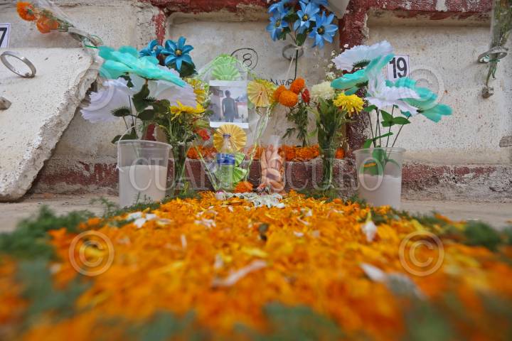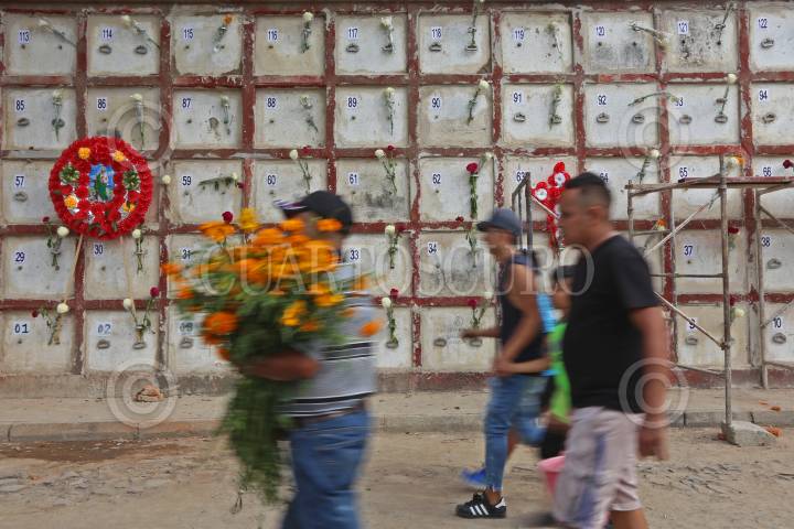 GUADALAJARA, JALISCO, 02NOVIEMBRE2018.- Este día de muertos en el Panteón Guadalajara, familiares y personas ajenas llevaron flores y coronas a las criptas donde yacen los cuerpos de las personas inhumadas por la problemática de los tráileres que el Instituto Jalisciense de Ciencias Forenses (IJCF) contrato para almacenar cadáveres, mismos que fueron vistos en diversos puntos de la metrópoli, algunos de ellos ya se encuentran identificados la gran mayoría solo los distingue un numero o letra. FOTO: FERNANDO CARRANZA GARCIA /CUARTOSCURO.COM