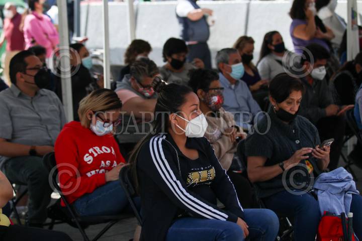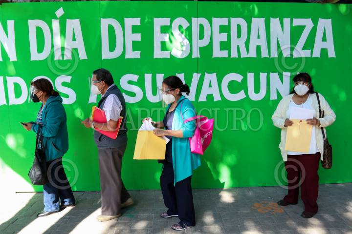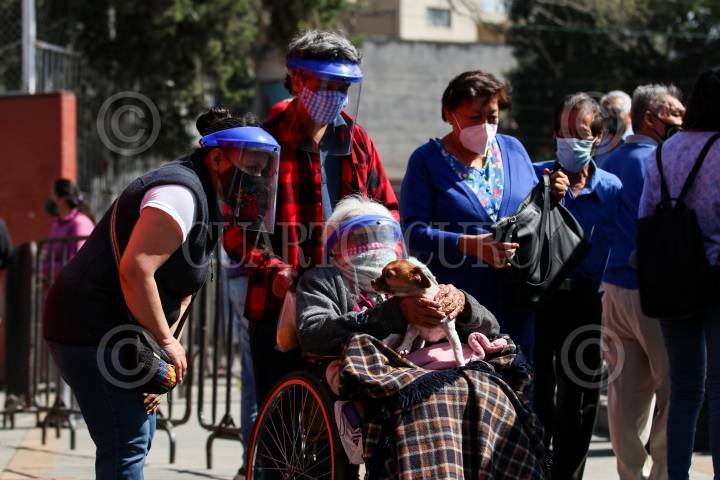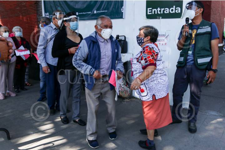 Adultos mayores acuden a vacunarse a la Escuela Superior de Maestros en Miguel Hidalgo.