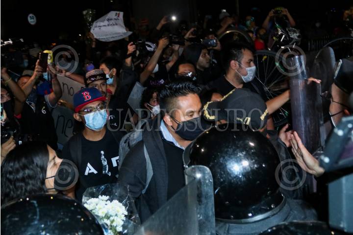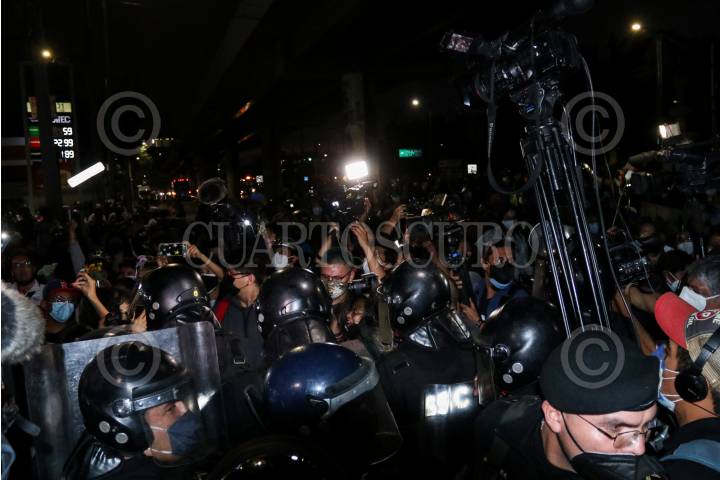 Un conato de enfrentamiento entre policías y Vecinos de Tláhuac que marcharon de la estación Culhuacán a Olivos para exigir justicia tras el colapsó del metro el pasado 03 de mayo de 2021