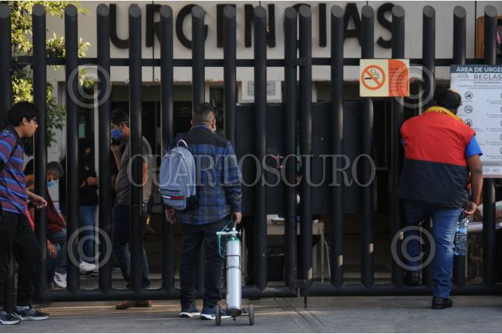 CIUDAD DE MÉXICO, 15ENERO2024. - Una persona con un tanque de oxígeno llega a la zona de urgencias de Hospital Dr. Gea González. FOTO: DANIEL AUGUSTO /CUARTOSCURO.COM