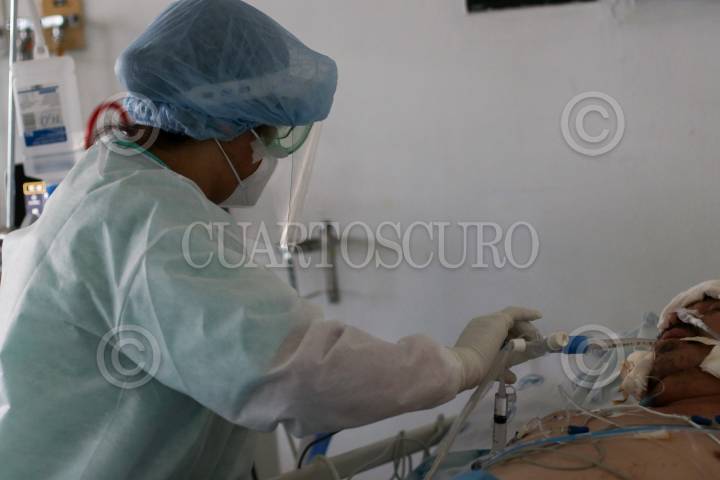 Personal médico atiende a un paciente intubado en el área de Piso Covid-19 en el Hospital Juárez de México.