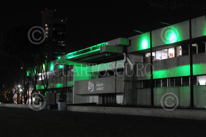 La noche de este lunes, funcionarios de la alcaldía Benito Juárez decidieron iluminar de verde el edificio, en solidaridad con los médicos que combaten el coronavirus.