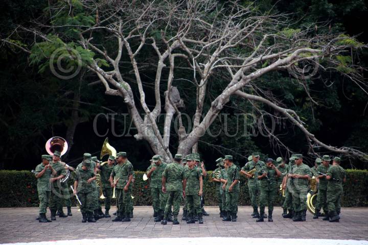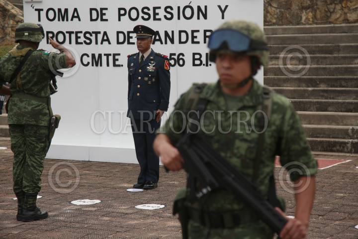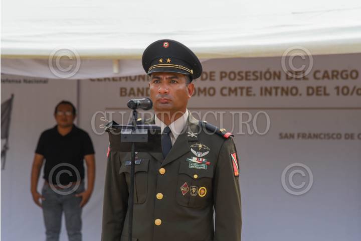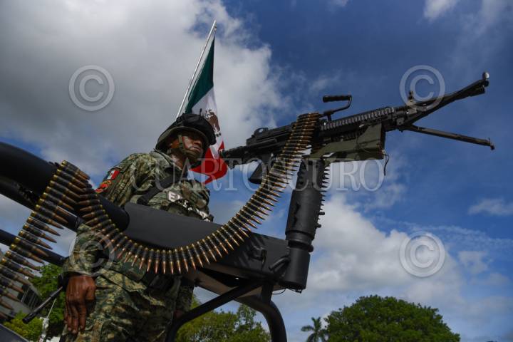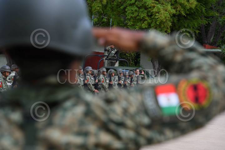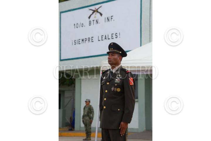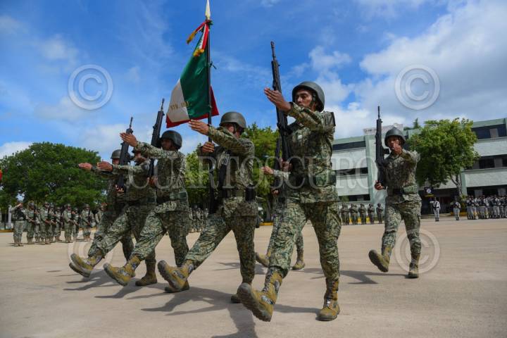 CAMPECHE, CAMPECHE, 07JULIO2025.- El coronel Abel Muñoz Sánchez rindió protesta como comandante interino del Décimo Batallón de Infantería en Campeche, durante una ceremonia militar en donde se rindieron honores a la bandera. FOTO: MICHAEL BALAM/CUARTOSCURO.COM