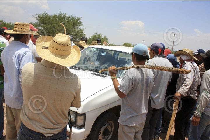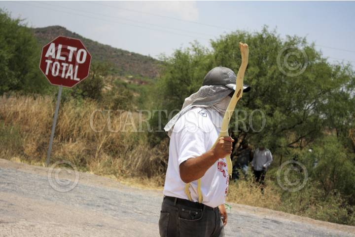 LORETO, ZACATECAS, 06JUNIO2013.- Al rededor de 300 mineros armados con palos, fierros, piedras, resorteras,etc, mantienen paralizada la entrada a la minera Coronel propiedad del magnate y empresario Carlos Slim Helú. El pasado 31 de mayo dos grupos de sindicalizados se pelan el control y la asignación del contrato colectivo de trabajo de por lo menos 748 trabajadores mineros. La disputa involucra a sindicalistas de la CROC, a simpatizantes de Napoleón Gómez Urrutia, mejor conocidos como los “Napitos” y a los sindicalizados afines a Carlos Pavón campos, este conflicto dejo como saldo a 7 personas lesionadas a golpes y miles de pesos en daños a por lo menos una veintena de automóviles. FOTO: EDGAR CHAVEZ /CUARTOSCURO.COM