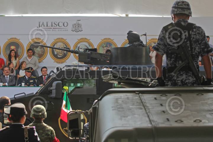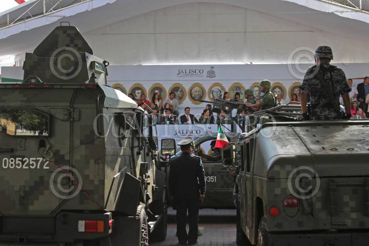GUADALAJARA, JALISCO 16SEPTIEMBRE2015.- Militares, policías estatales, municipales y de más dependencias y corporaciones del estado de Jalsico recorrieron las calles del andador Chapultepec de la ciudad con motivo del desfile Cívico Militar en conmemoración del 205 Aniversario de la Independencia de México. El gobernador del estado, Jorge Aristóteles Sandoval Díaz, presenció el evento acompañado de otras autoridades de la entidad. FOTO: FERNANDO CARRANZA GARCIA / CUARTOSCURO.COM