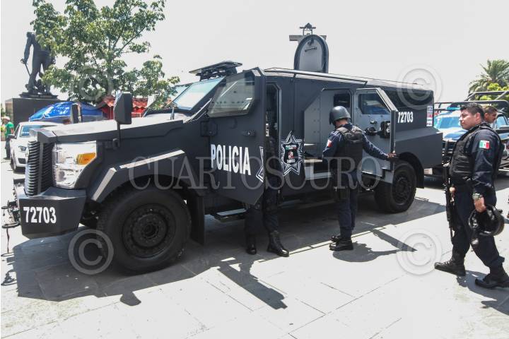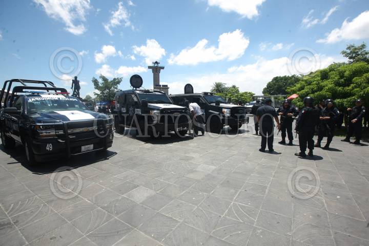 VILLAHERMOSA, TABASCO, 14AGOSTO2017.- Nuevo equipamientos fueron entregados a corporaciones de Seguridad Pública estatal y municipal, entre ellos dos vehículos tipo Rino. El evento denominado Programa Integral de Seguridad se efectuó en la explanada de Plaza de Armas. FOTO: MARCO POLO GUZMÁN HERNÁNDEZ /CUARTOSCURO.COM