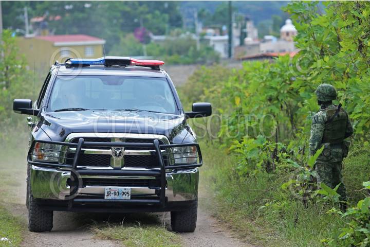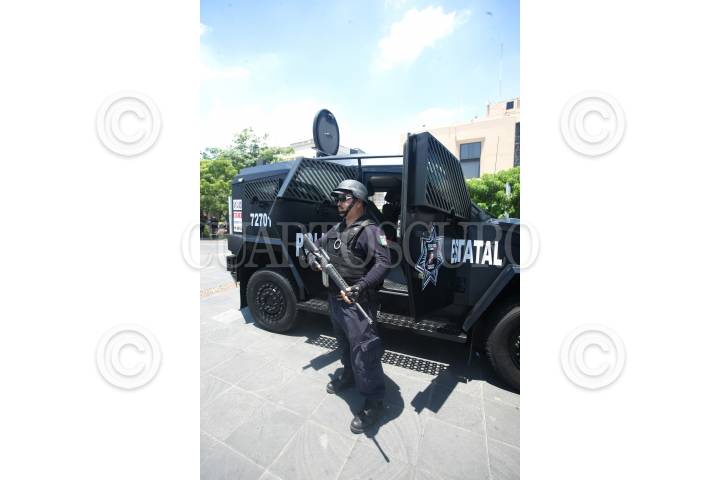 Servidores Públicos de corporaciones de seguridad sostienen pancartas con algunas exigencias para los diputados del estado, para exigir que se apruebe la iniciativa de ley de los 25 años de antigüedad laboral.