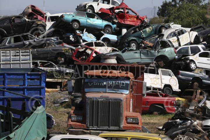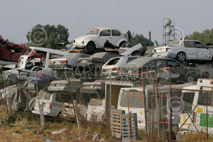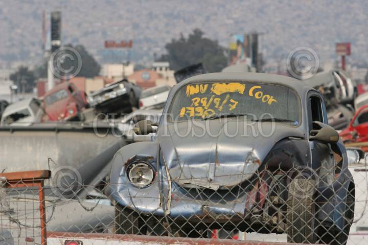 QUERÉTARO, QUERÉTARO, 19MARZO2010.- La compactación es el destino de los automóviles que han sido incautados y no fueron reclamados en la PGJ (Procuraduría General de Justicia) estatal. Los dueños tienen que acreditar mediante documentos la pertenencia del auto y tienen hasta diez años para hacer el reclamo. FOTO: DEMIAN CHÁVEZ/CUARTOSCURO.COM