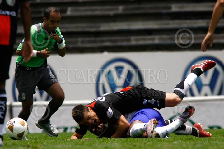 PUEBLA, PUEBLA, 25JULIO2010.- En su primer partido como locales, el equipo Lobos BUAP derrotó dos goles a uno a la escuadra de Correcaminos de la UAT, partido que se disputó en el estadio Cuauhtémoc como parte del torneo apertura 2010 de la liga de ascenso. FOTO: FRANCISCO GUASCO/CUARTOSCURO.COM