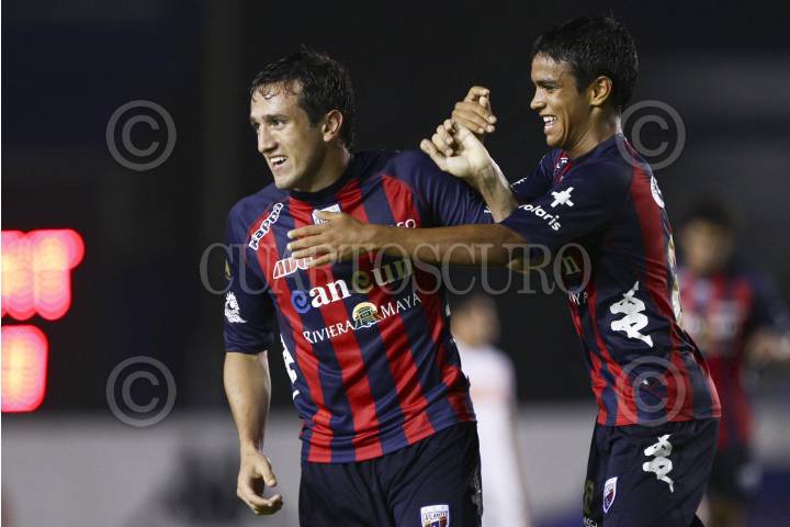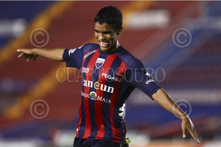 CANCÚN, QUINTANA ROO, 19FEBRERO2013.- Alberto García (Atlante), festeja su gol en el partido entre los Potros de Hierro del Atlante vs Correcaminos de la Universidad Autónoma de Tamaulipas (UAT), en juego correspondiente a la Jornada 4 de la Copa MX 2013, en el Estadio Olimpico de Cancún. FOTO: CSPHOTO / CUARTOSCURO.COM