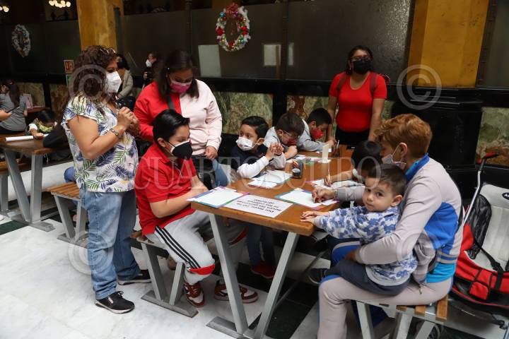 Niños acompañados de familiares acuden al Palacio Postal de la Ciudad de México para escribir su carta dirigida a los “Reyes Magos”.