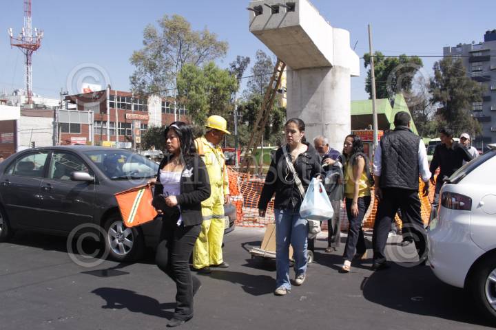 MÉXICO, D.F., 07FEBRERO2009.- Debido a los trabajos de construcción de la línea 12 del metro, algunos pasos para cruzar las calles han quedado cerrados, por tal motivo personal de labora en la construcción es quién da el paso a los transeuntes. FOTO: SÁSHENKA GUTIÉRREZ/CUARTOSCURO.COM