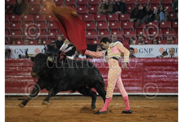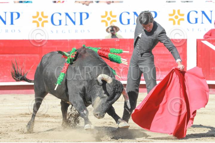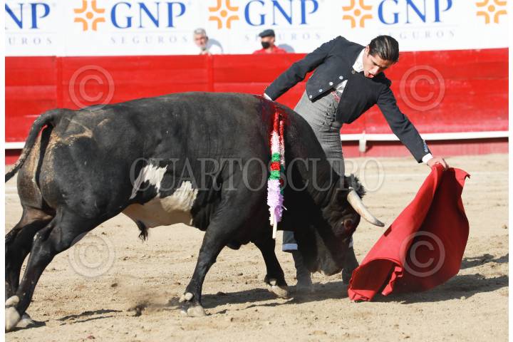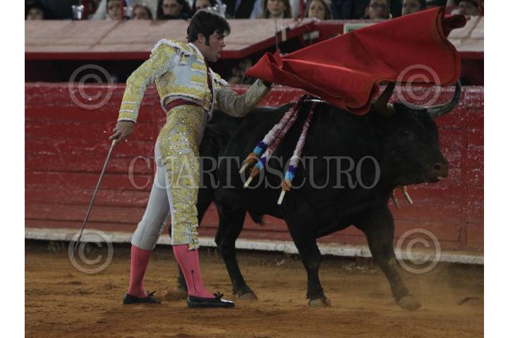 Luis David durante la corrida en la Plaza de la Luz en León, Guanajuato