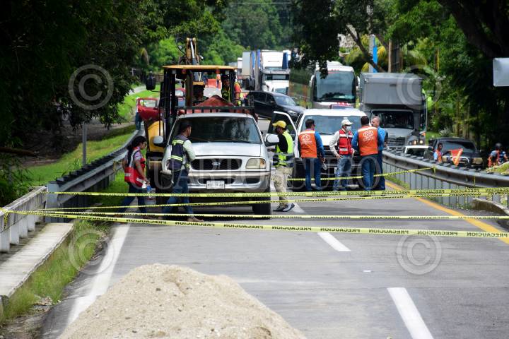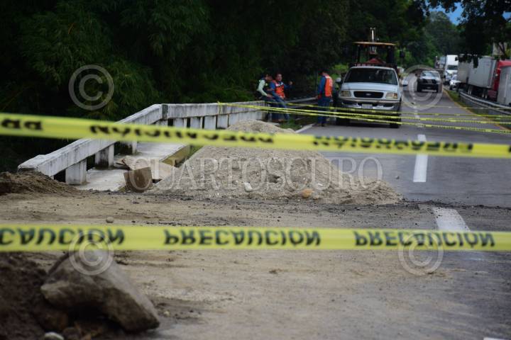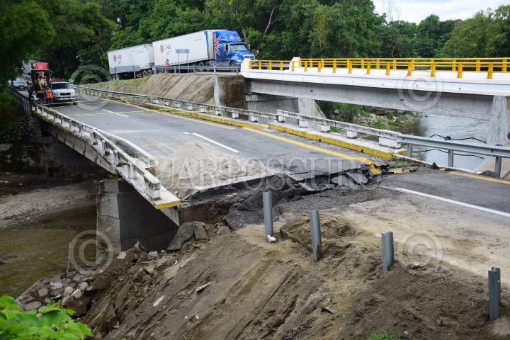 El puente Doña María se fracturó en una de las bases como consecuencia de las fuertes lluvias que ha suscitado en la región y las corrientes el rio Jalapa