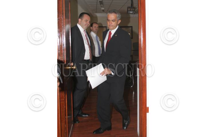 MÉXICO, D.F., 14MARZO2011.- Miguel Ángel Mancera, procurador capitalino dio detalles de la captura de cinco personas que presuntamente se dedicaban al secuestro, entre los detenidos hay dos policías ministeriales del Distrito Federal pertenecientes a la coordinaciones territoriales 2 y 5 de la delegación Cuahutemoc. FOTO: SAÚL LÓPEZ/CUARTOSCURO.COM