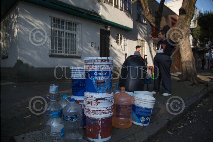 CIUDAD DE MÉXICO, 07NOVIEMBRE2018.- Vecinos de la colonia Roma Sur esperaron durante toda la tarde la llegada de la pipa que los abastecería de agua en el punto Ures y Tehuantepec sin embargo esta no llegó. José Luis Alcudia vocero de la Comisión Nacional del Agua (Conagua) afirmó que este miércoles quedó restablecido al cien por ciento el bombeo de agua potable al Valle de México sin embargo la normalización del servicio es paulatino lo que explica que en algunas delegaciones como la Benito Juárez continúa con el servicio de pipas. FOTO: ILSE HUESCA /CUARTOSCURO.COM