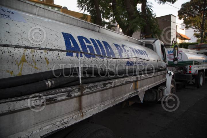 Pipas de agua abastecieron del líquido a domicilios de la colonia Agrarista, alcaldía Iztapalapa