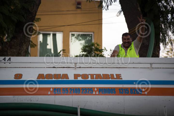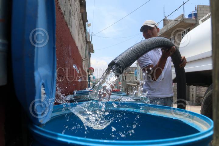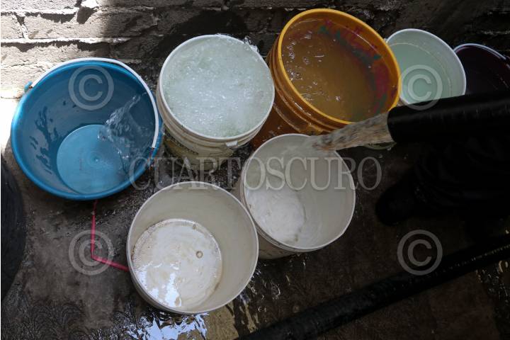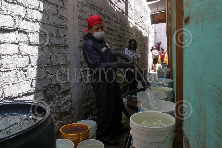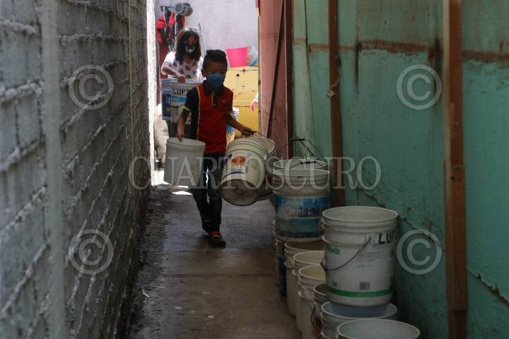 Vecinos de San Nicolás esperan el llenado de agua en sus tinacos y tambos.