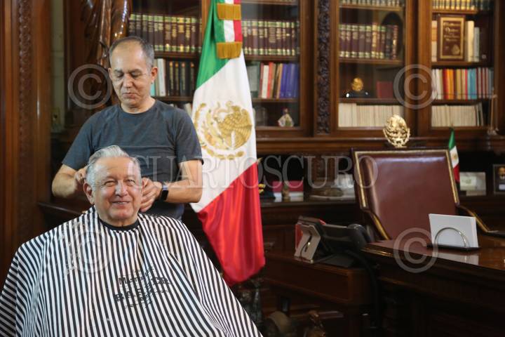 Andrés Manuel López Obrador, presidente de México, compartió una imagen mientras le realizaban un corte de cabello, acompañada de la frase, "Solo Álvaro Cárdenas, mi peluquero de años, me toma el pelo."