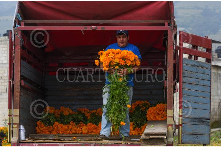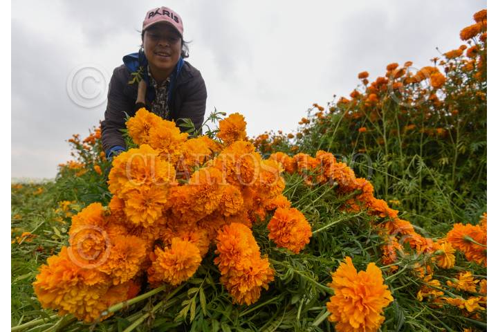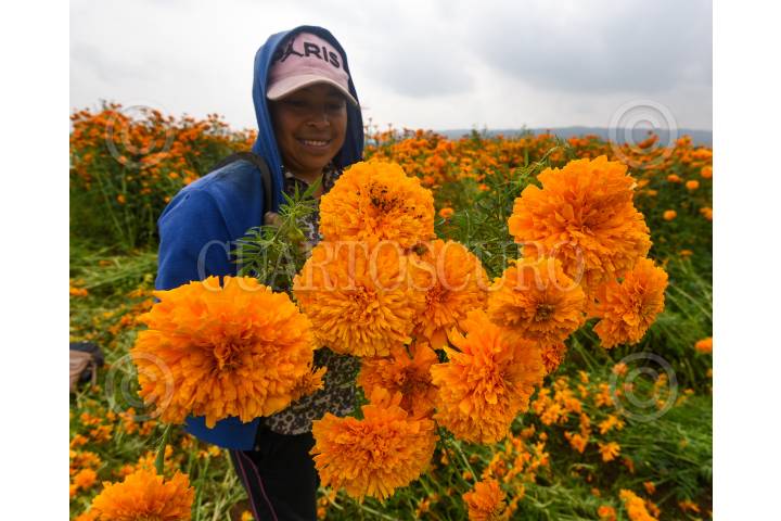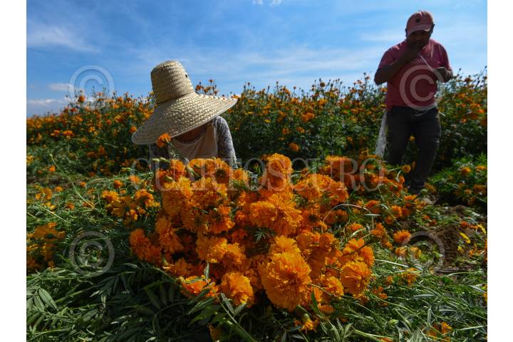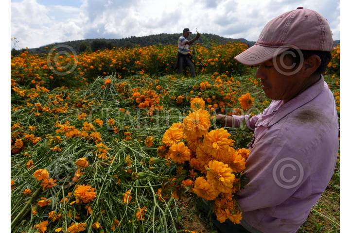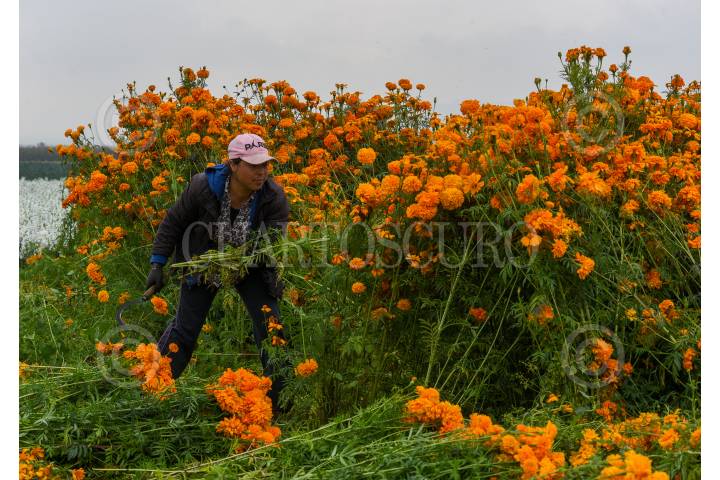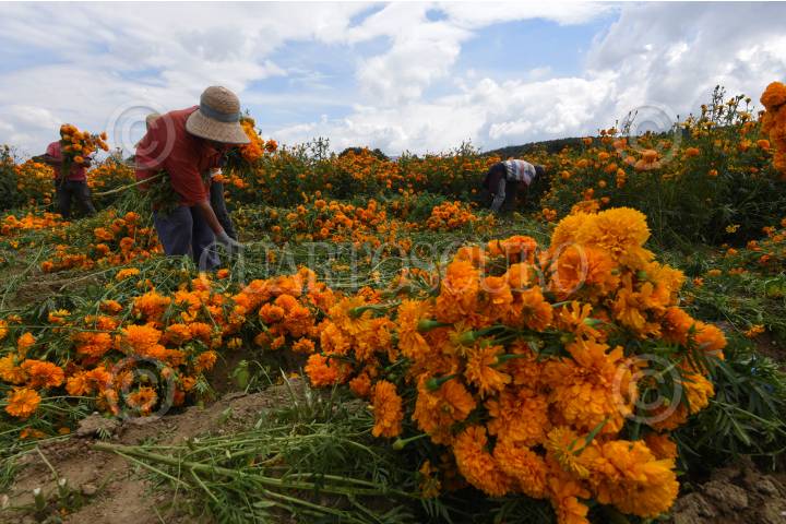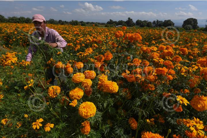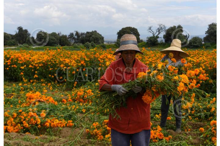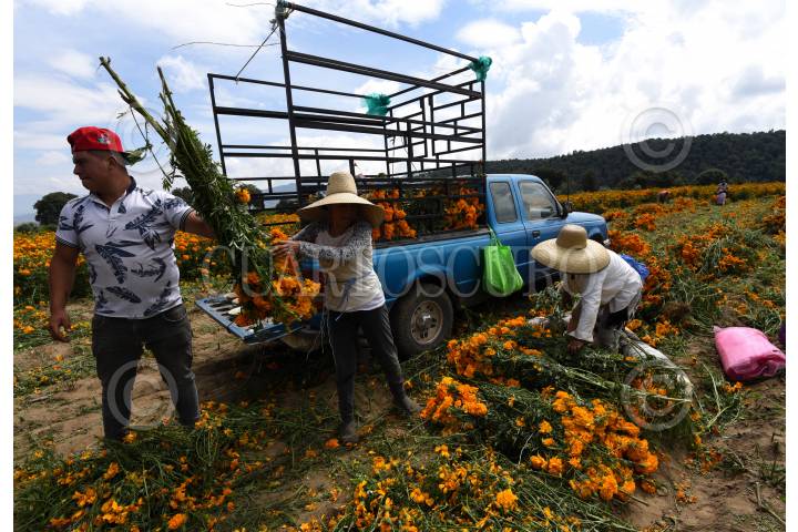 Desde muy temprana hora inicia el corte de flor de cempasúchil en los campos de San Francisco Putla en Tenango del Valle, la cual será ocupada para adornar los altares pare el festejo del Día de Muertos en los hogares mexiquense.