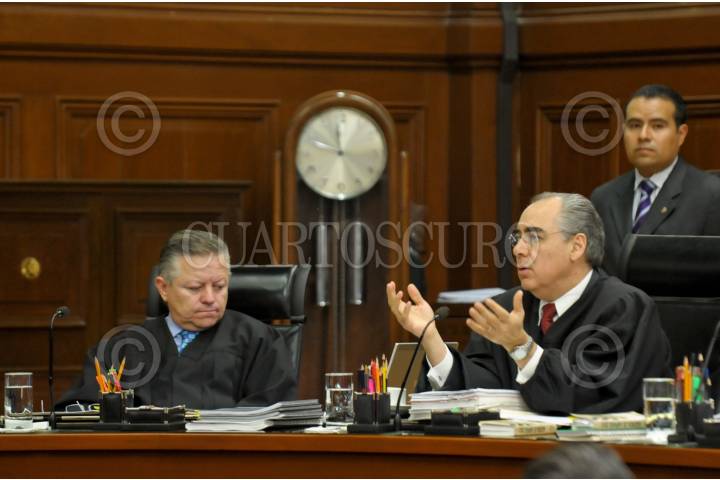 MÉXICO D.F., 21JUNIO2012.- Los ministros Arturo Saldivar Lelo de Larrea y José Fernando Franco, durante la sesión en el pleno de la Suprema Corte de Justicia de la Nación. FOTO: CUARTOSCURO.COM