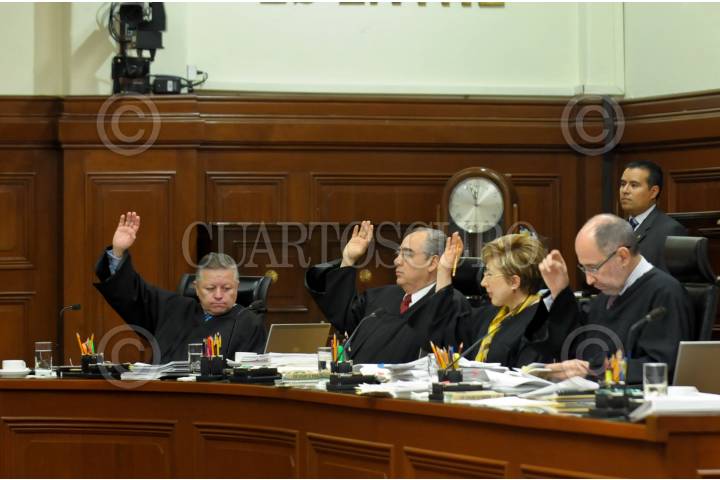 MÉXICO D.F., 21JUNIO2012.- Los ministros Arturo Saldivar Lelo de Larrea, José Fernando Franco, Margarita Luna Ramos y José Ramón Cossio, durante la sesión en el pleno de la Suprema Corte de Justicia de la Nación. FOTO: CUARTOSCURO.COM