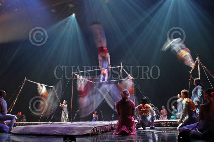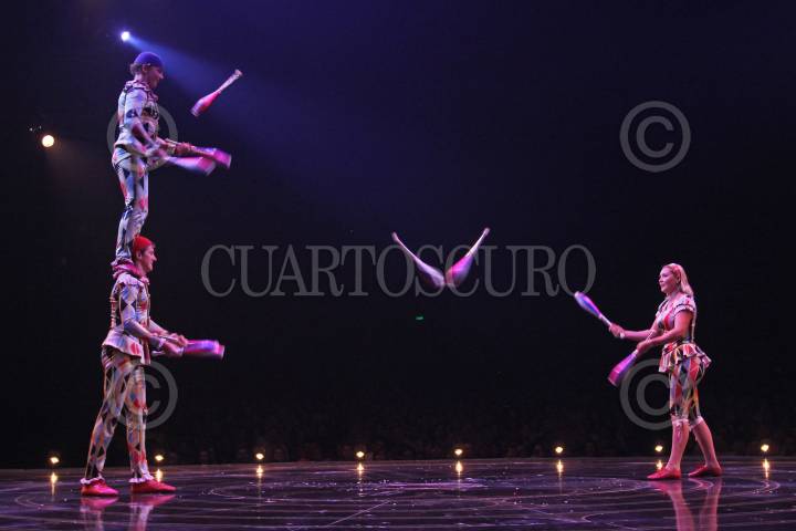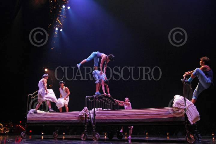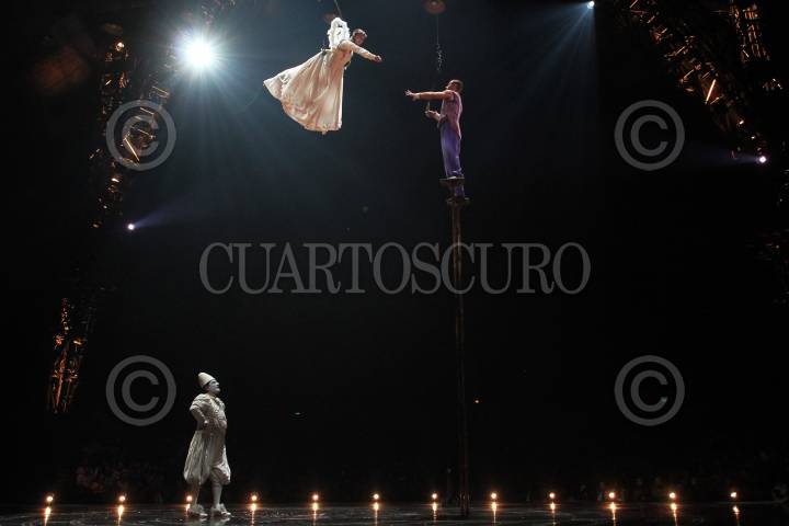 MÉXICO, D.F., 02SEPTIEMBRE2015.- La noche de ayer se realizó en la carpa Santa Fe, el inicio de la nueva temporada del Cirque Du Soleil, la compañía de origen canadiense muestra nuevamente su montaje dramático de artes circenses y esparcimiento callejero ahora con el nombre de "Corteo", palabra italiana que significa cortejo fúnebre. Historia que a través de la imaginación de un payaso imagina su propio funeral en una atmósfera carnavalesca. FOTO: ADOLFO VLADIMIR /CUARTOSCURO.COM
