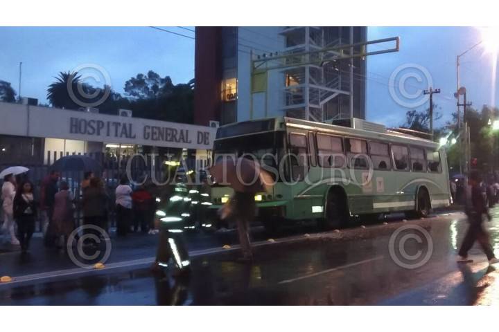 MÉXICO, D.F., 13AGOSTO2015.- Debido a un corto circuito en un trolebus que circulaba frente al Hospital General en la colonia Doctores,10 personas resultaron intoxicadas por el humo. Los usuarios del transporte rompieron los vidrios para evitar se quedaran sin oxigeno. FOTO: ESPECIAL /CUARTOSCURO.COM