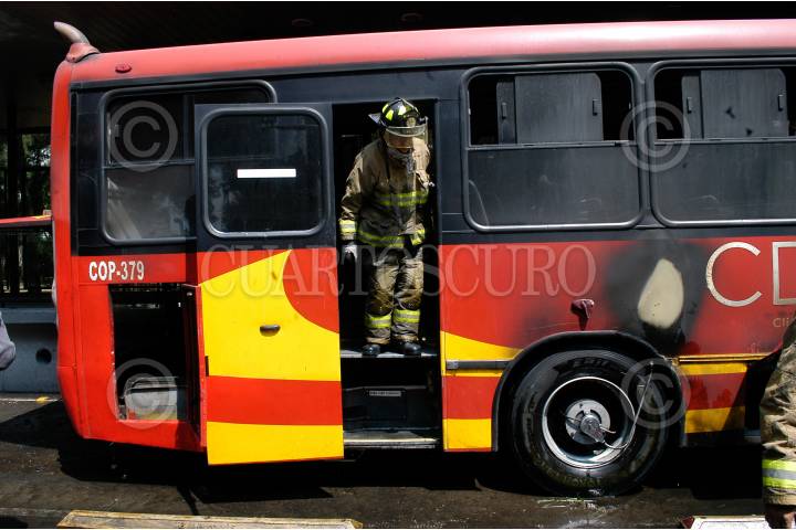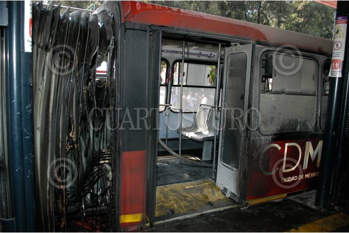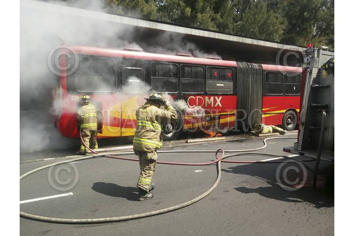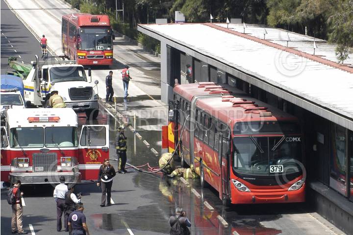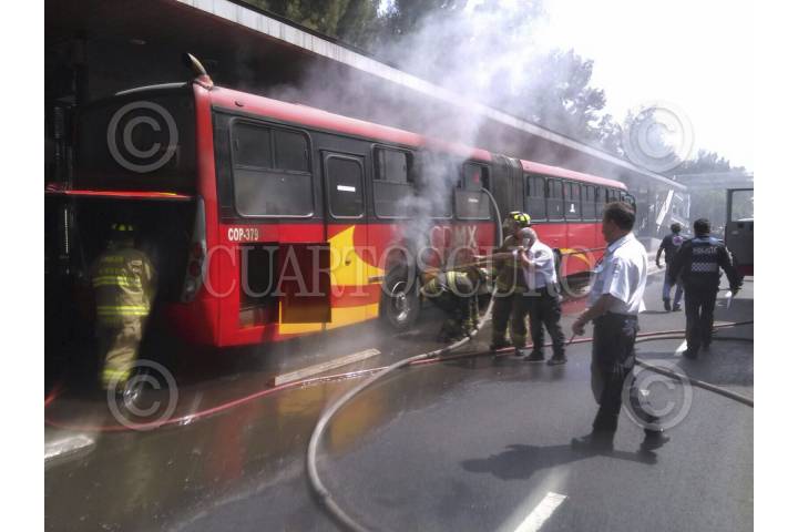 MÉXICO, D.F., 06OCTUBRE2015.- Una unidad del Metrobus de la Línea 2 sufrió un corto circuito, lo que género humo dentro y algo de fuego. El incidente ocurrió alrededor de las 12:00 en la unidad 379, la cual había llegado a la estación Tlacotal. Bomberos atendieron la emergencia ocurrida en el Eje 4 Sur avenida Plutarco Elías Calles, esquina Goma, en la colonia Gabriel Ramos Millán, en Iztacalco. FOTO: ARMANDO MONROY /CUARTOSCURO.COM