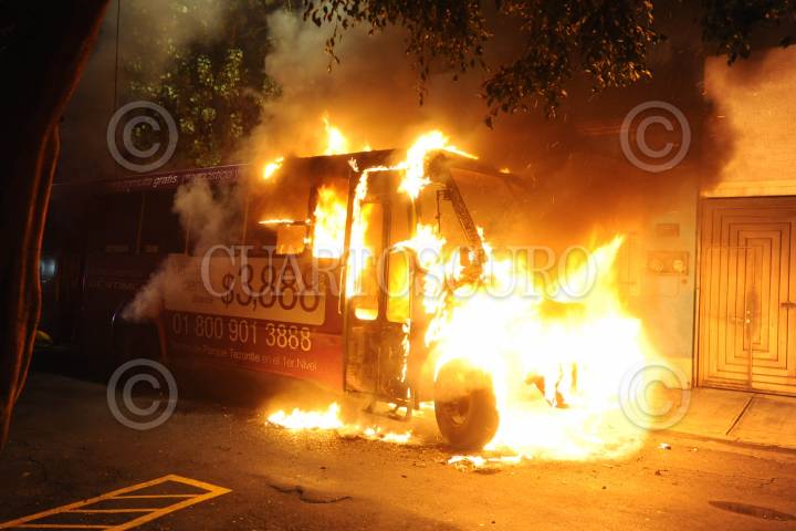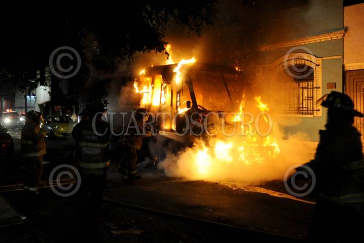 CIUDAD DE MÉXICO, 03AGOSTO2016.- Un autobús de pasajeros, que se encontraba estacionado sobre la calle 27, en la colonia San Pedro de Los Pinos, fue consumido por un incendio; el cual, fue aparentemente provocado por un corto circuito en el cableado eléctrico de la unidad. Bomberos de la demarcación sofocaron el fuego. Aún no se reportan personas lesionadas. FOTO: LUIS CARBAYO /CUARTOSCURO.COM