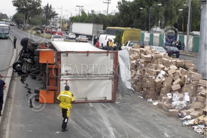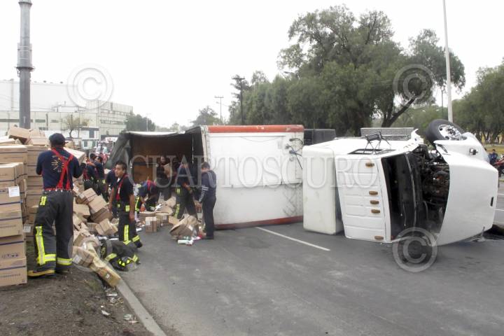 MÉXICO, D.F., 15DICIEMBRE2009.- Un trailer con siete toneladas de cosmeticos volcó esta madrugada sobre prolongación División del Norte en la glorieta de Vaqueritos. FOTO: LUZ ACEVEDO/CUARTOSCURO.COM