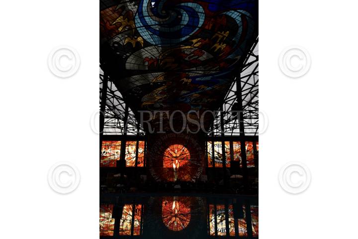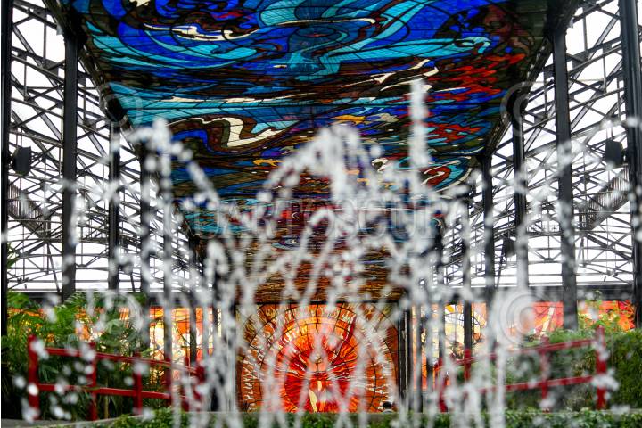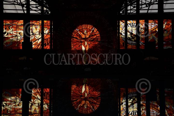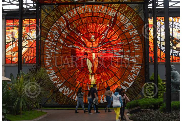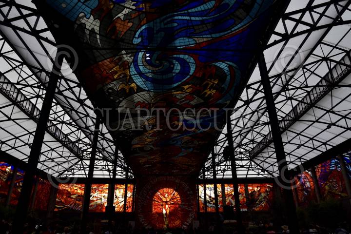 TOLUCA, ESTADO DE MÉXICO, 21MARZO2019.- En el marco del Equinoccio de Primavera se llevó a cabo el espectáculo Sol en el Sol en el Jardín Botánico Cosmovitral, en donde el vitral del Hombre Sol es iluminado por el sol al atardecer. FOTO : ARTEMIO GUERRA BAZ /CUARTOSCURO.COM