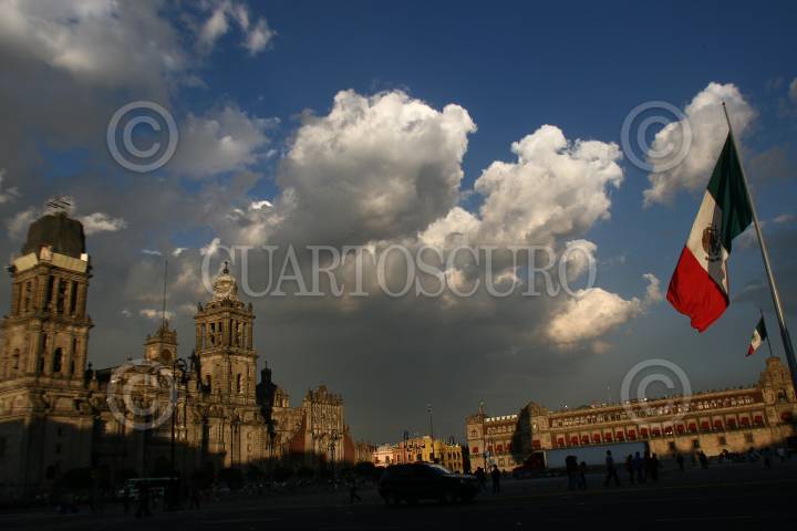 MÉXICO, D.F., 24NOVIEMBRE2009.- Aspecto del atardecer en la catedral metropolitana y la plaza de la constitución. FOTO: SAÚL LÓPEZ/CUARTOSCURO.COM