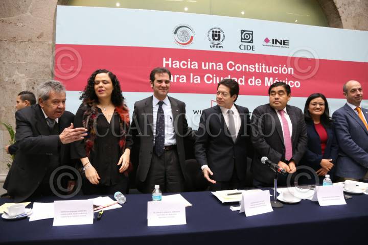 MÉXICO D.F., 09 FEBRERO2015.- Porfirio Muñoz Ledo, Mariana Gomez del Campo, Lorenzo Cordova, Mario Delgado, Luis Geronimo Barbosa y Aleida Alavez, durante el foro Hacia una Constitución para la Ciudad de México, realizado en la antigua sede del Senado de la República. FOTO: SAÚL LÓPEZ /CUARTOSCURO.COM