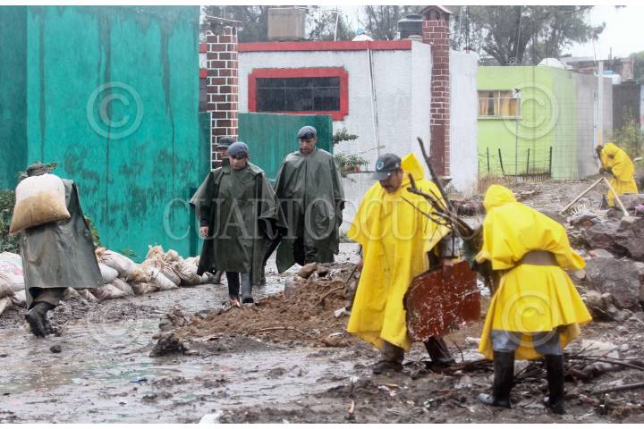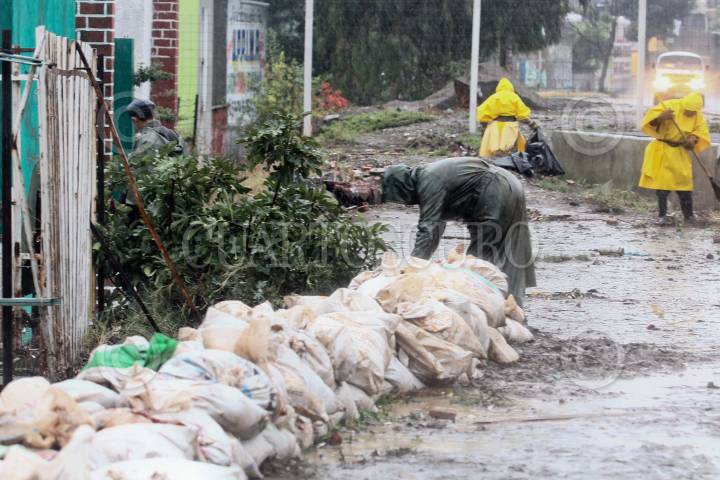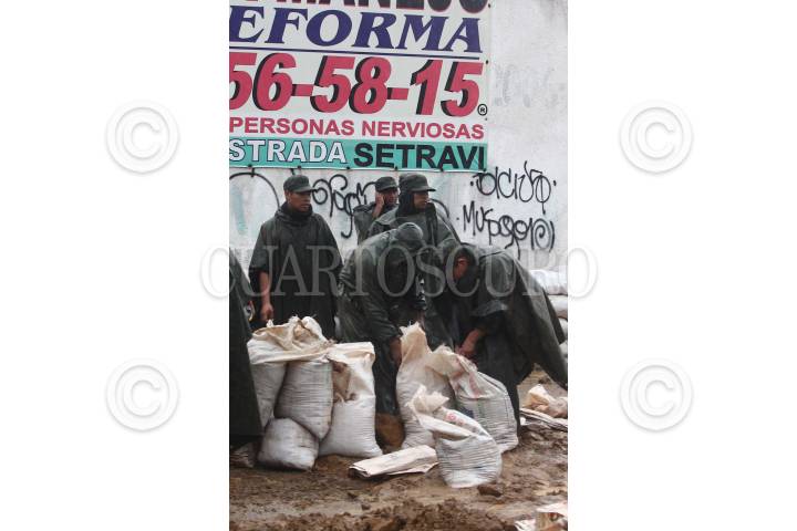 IXTAPALUCA, ESTADO DE MÉXICO, 30JUNIO2011.- .Elementos del ejercito mexicano colocan costales con arena en calles aledañas a la colonia el Molino para evitar que las intensas lluvias provoquen el desbordamiento de aguas negras de los canalas “La compañía” y “El capulin”. FOTO: SAÚL LÓPEZ/CUARTOSCURO.COM