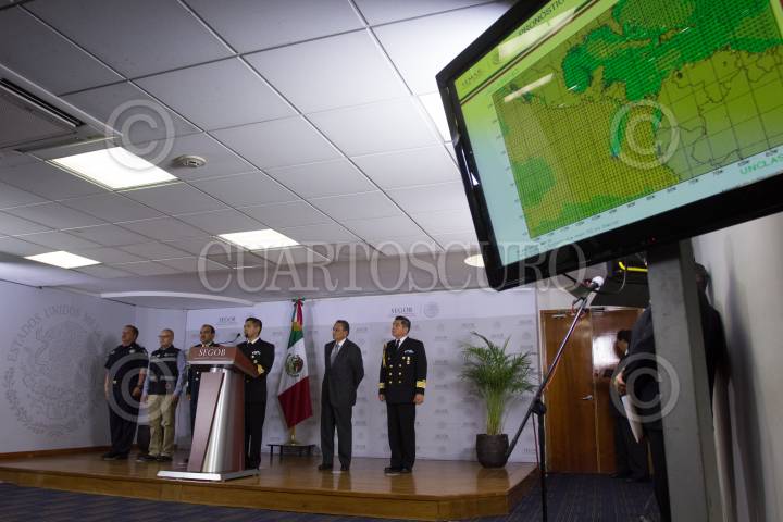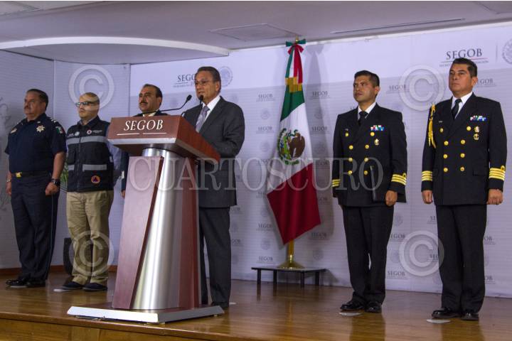 MÉXICO, D.F., 04MAYO2015.- Luis Felipe Puente, coordinador Nacional de Protección Civil, durante la conferencia donde dio a conocer las afectaciones que se registraron el fin de semana por el fenómeno de “Mar de Fondo” el cual afecto las costas del pacifico principalmente Guerrero y Oaxaca. FOTO: ENRIQUE ORDÓÑEZ /CUARTOSCURO.COM