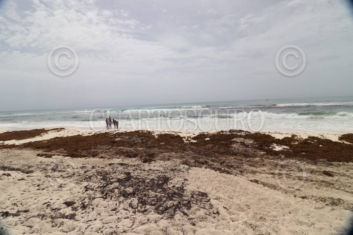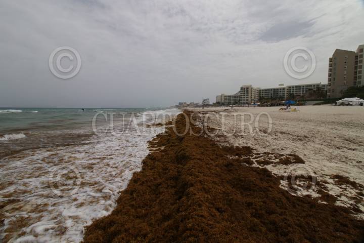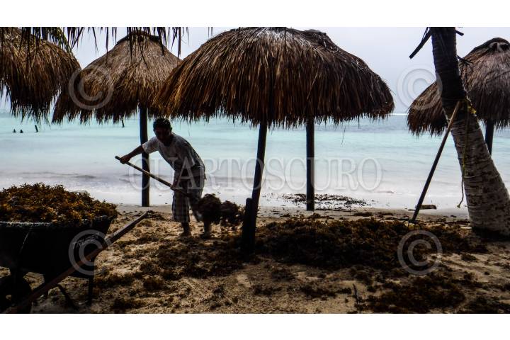QUINTANA ROO, 06JULIO2018.- Han pasado cerca de dos meses desde que el sargazo comenzó a aparecer en las costas de Quintana Roo, desde entonces el gobierno y los hoteles se han encargado de mantener las playas limpias, pero los esfuerzos no son suficientes para evitar que diario lleguen toneladas de estos seres vivos a terminar de morir. FOTO: RODRIGO RUBIO /CUARTOSCURO.COM