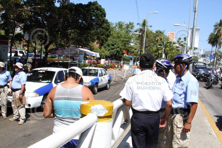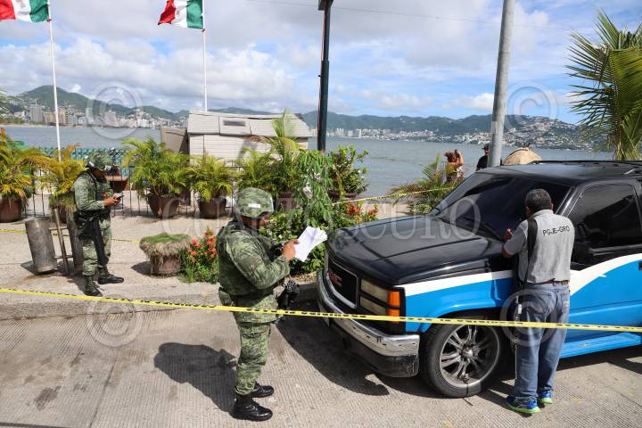 ACAPULCO, GUERRERO, 07MARZO2016.- Un sitio de taxis de un centro comercial fue baleado por hombres desconocidos, sobre la avenida Costera Miguel Alemán, en la zona Tradicional. Se reportaron tres taxistas heridos de bala, un menor de edad y un civil. Dos vehículos compactos presentaron daños. FOTO: BERNANDINO HERNÁNDEZ /CUARTOSCURO.COM