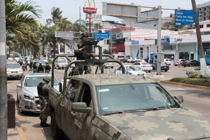 ACAPULCO, GUERRERO, 17MAYO2018.- A un día del inicio de Aca Moto 2018 una de las concentraciones de motociclistas mas grandes en el país y donde año con año ocurren riñas y accidentes fatales, soldados y policías turísticos implementaron un operativo vial en la costera Miguel Alemán. FOTO: CARLOS CARBAJAL /CUARTOSCURO.COM
