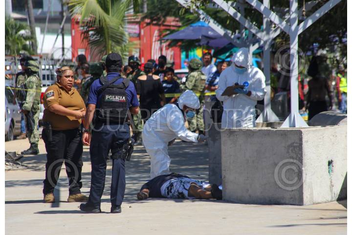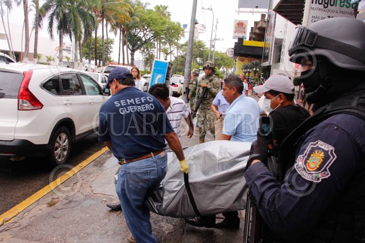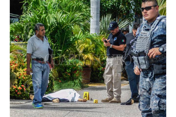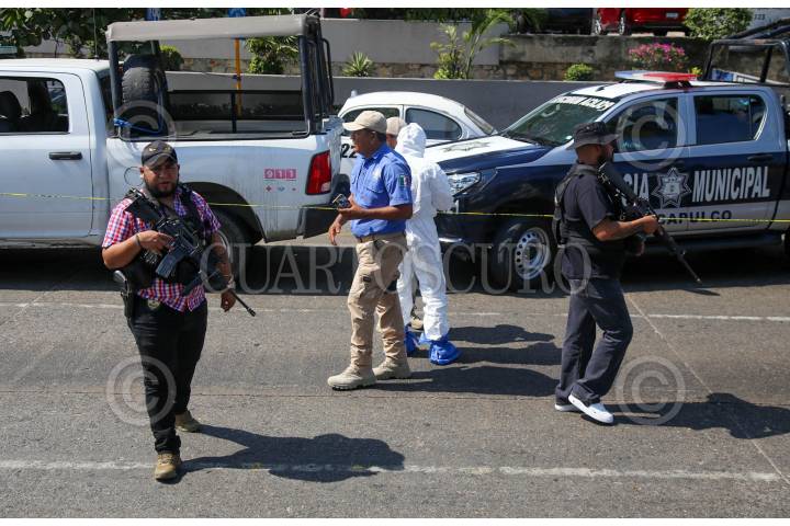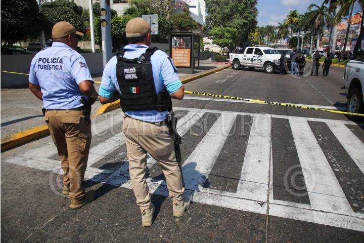 Una persona muerta y otra herida fue el resultado de un ataque armado en plena avenida Costera de Acapulco, los hechos ocurrieron frente a turístas qué pasaban, el cuerpo de la persona asesinada quedó frente al hotel Playa Suite y cubierto por patrullas de la policía para evitar que turístas lo vieran, también la avenida Costera fue cerrada a la circulación durante las diligencias.