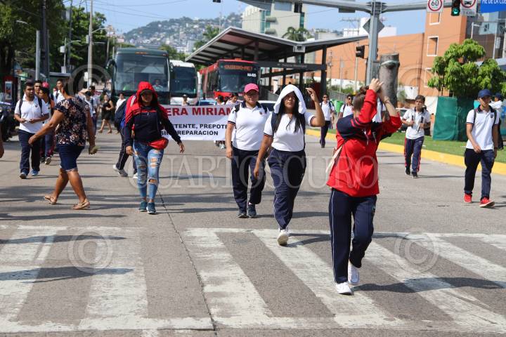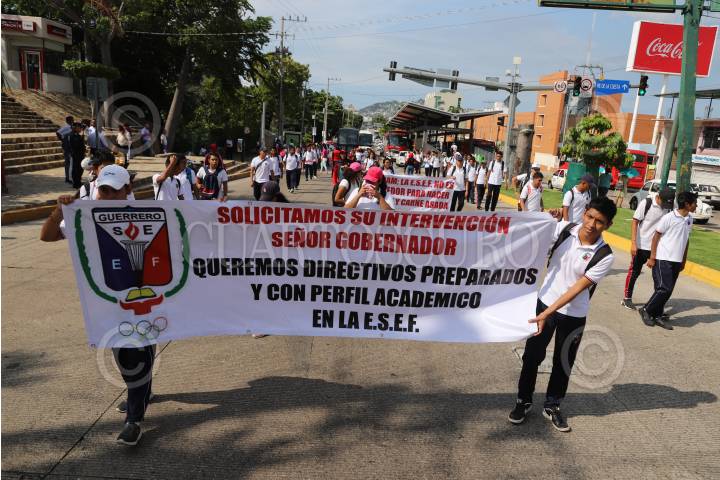ACAPULCO, GUERRERO, 28OCTUBRE2019.- Estudiantes de la Escuela Superior de Educación de Educación Física de Acapulco, marcharon por la costera Miguel Alemán, lo que provocó un gran caos vial, los jóvenes para exigen que los directivos del planten tengan el perfil académico adecuado, también acusaron que directivos utilizan el plantel para vender comidas. FOTO: BERNANDINO HERNÁNDEZ /CUARTOSCURO.COM