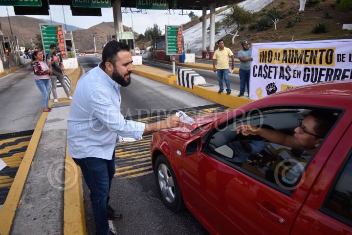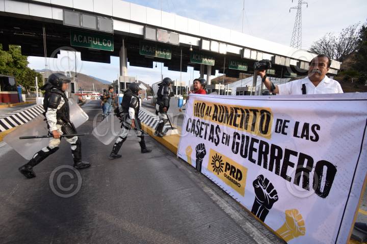 Protesta de integrantes del PRD Chilpancingo en contra del aumento al costo de peaje en la Autopista del Sol en Chilpancingo, Guerrero
