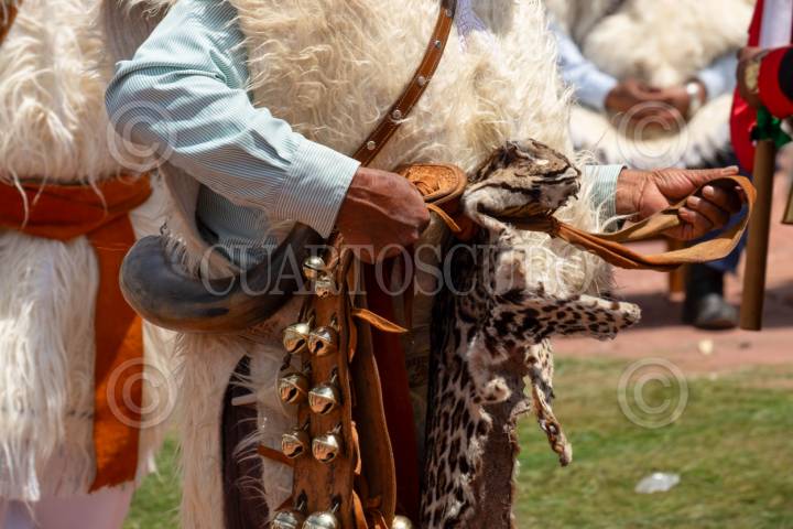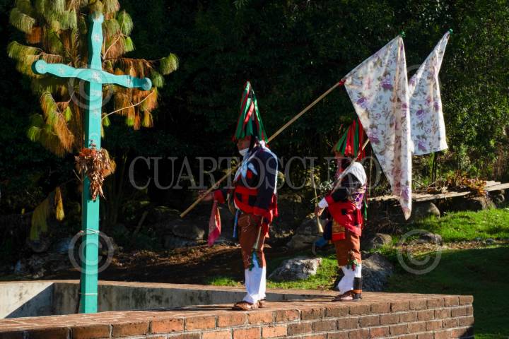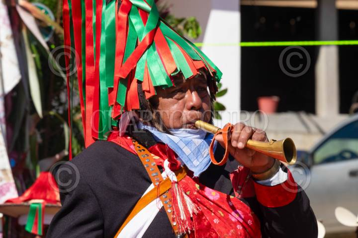 SAN JUAN CHAMULA, CHIAPAS, 13ABRIL2025.- Autoridades tradicionales de este municipio inician los rituales para dar inicio a la Semana Santa en la localidad. Entre misticismo y sincretismo religioso, decenas de pobladores encargados con su cargo resguardan los elementos más representativos de su cultura; con incienso, música tradicional, limpieza de artefactos y cambio de listones en las banderas sagradas, danzando al ritmo del tambor y las cuerdas en forma comunitaria. FOTO: ISABEL MATEOS HINOJOSA/CUARTOSCURO.COM