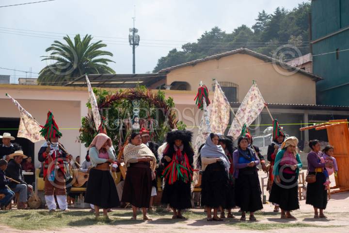 SAN JUAN CHAMULA, CHIAPAS, 22MAYO2025.- En la casa del Paxon del barrio de San Sebastián, las autoridades tradicionales llevan a cabo, en comunidad, el cambio de ornamenta de los altares como parte de los preparativos para una de las fiestas más importantes del pueblo tsotsil de San Juan. Durante esta ceremonia, las y los principales rezan, renuevan los altares, comparten el pox y, al compás de guitarras, arpas y tambores, danzan y entonan oraciones en su lengua materna, el tsotsil. FOTO: ISABEL MATEOS HINOJOSA /CUARTOSCURO.COM