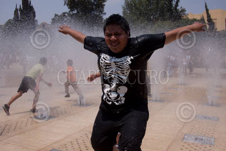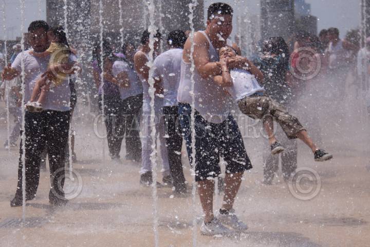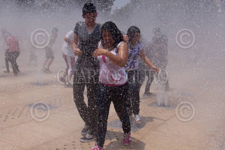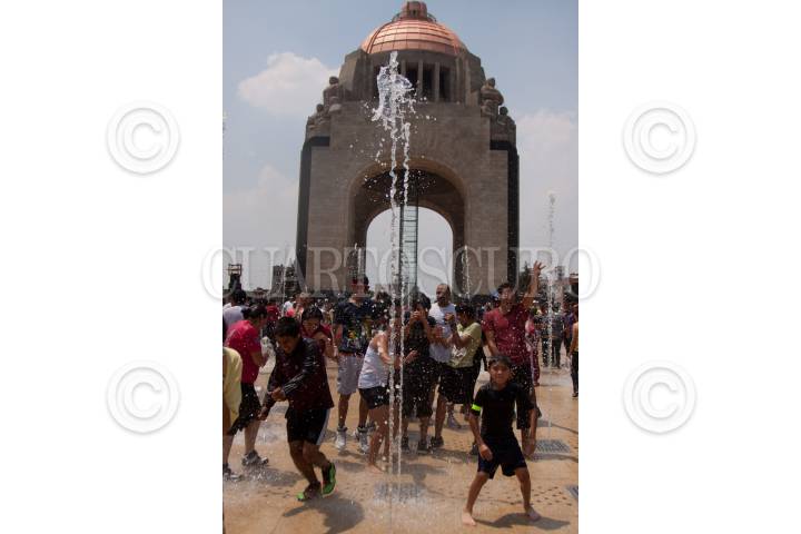 MÉXICO, D.F., 27MARZO2011.- Ante la ola de calor que azota a la ciudad, decenas de personas se dan cita en la explanada del Monumento a la Revolución, para mojarse. FOTO: IVAN STEPHENS/CUARTOSCURO.COM