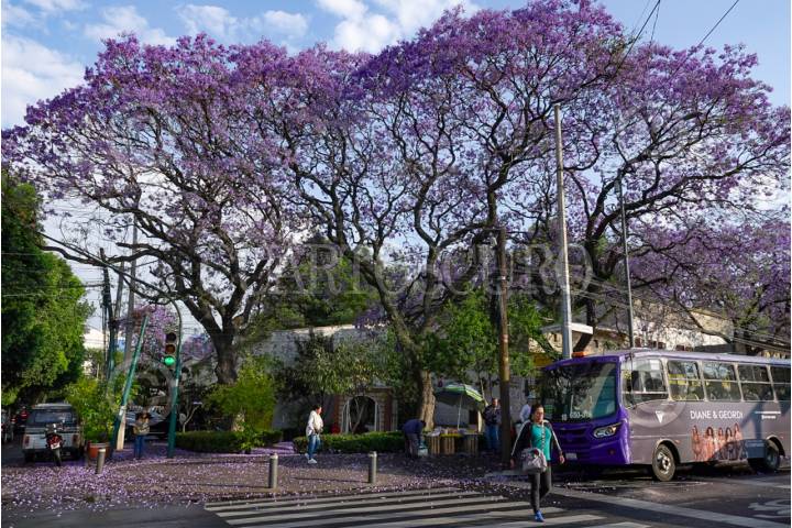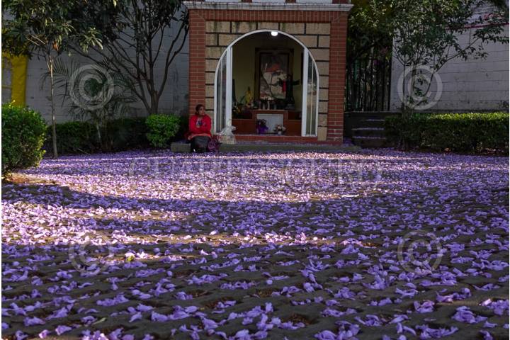 CIUDAD DE MÉXICO 26MARZO2025.- Grandes árboles de jacarandas cubren el cielo con su follaje y tapizan el suelo con sus pétalos caídos, luego de una lluvia moderada en la ciudad. FOTO: ROGELIO MORALES CUARTOSCURO.COM