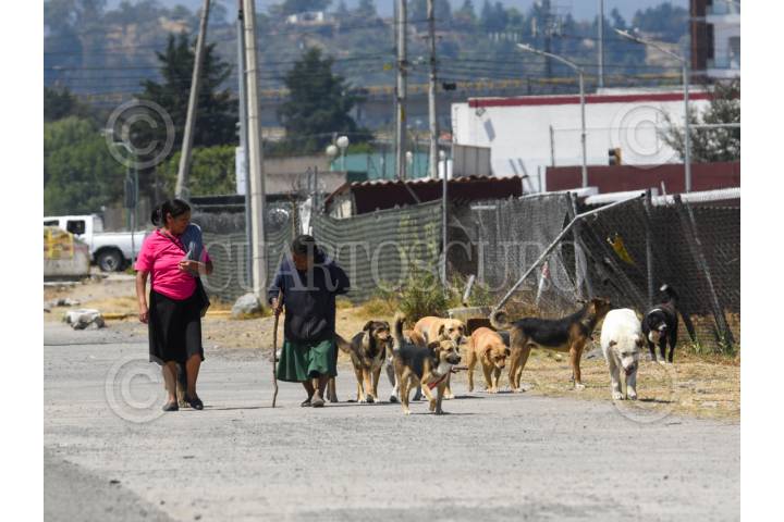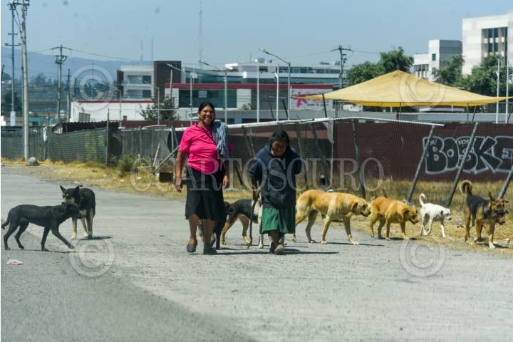 TOLUCA, ESTADO DE MÉXICO, 27 MAYO 2025.- Dos mujeres caminan por el antiguo camino a La Magdalena en Santa Cruz Atzcapotzalco en Santa Cruz, Toluca, acompañadas por una manada de perros. FOTO: CRISANTA ESPINOSA AGUILAR /CUARTOSCURO.COM