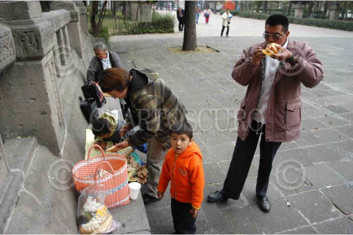 México D.F. 25DIC2003.- Algunas familias aprovechan los parques publicos para desayunar el ¨recalendado¨. En la entrada del bosque de Chapultepec , no faltaron las tortas de pollo. FOTO: Germán Romero/CUARTOSCURO.COM