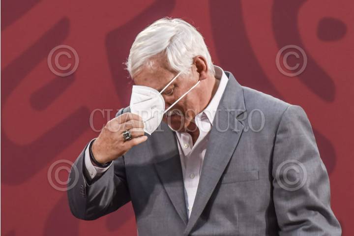 Miguel Torruco, secretario de Turismo, durante conferencia de prensa en la que se informó sobre la actualización de datos de la pandemia de coronavirus (covid-19) en el país. La actualización indica 56,594 casos confirmados acumulados, 12,085 casos confirmados activos y 6,090 defunciones.