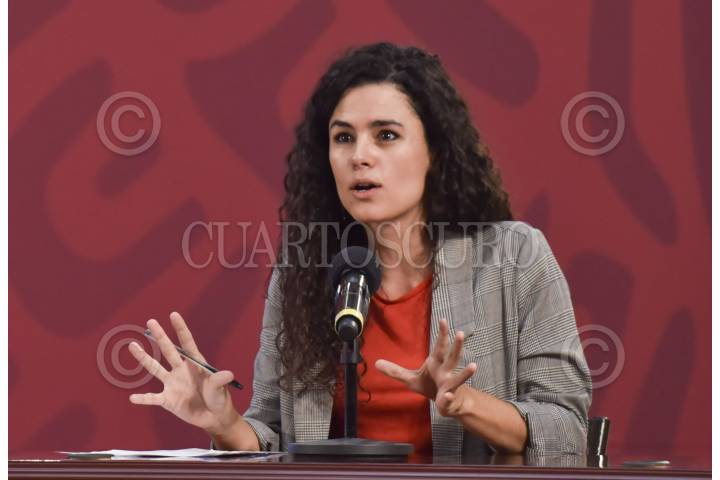 Luisa María Alcalde, secretaria de trabajo, durante conferencia de prensa en la que se ofrecieron detalles sobre el avance del programa “Producción para el Bienestar” durante la emergencia sanitaria por coronavirus (covid-19).